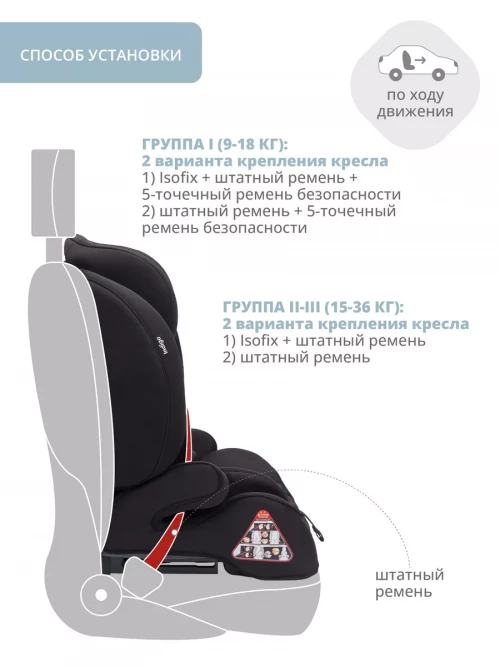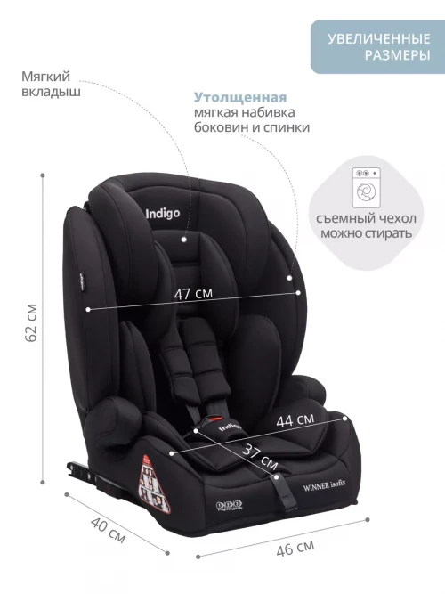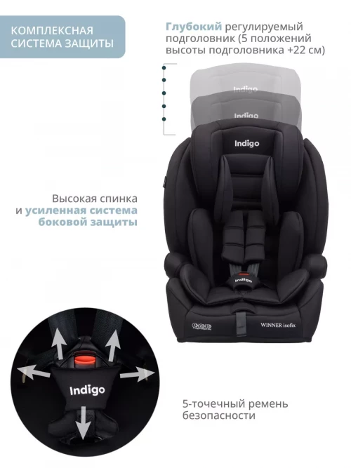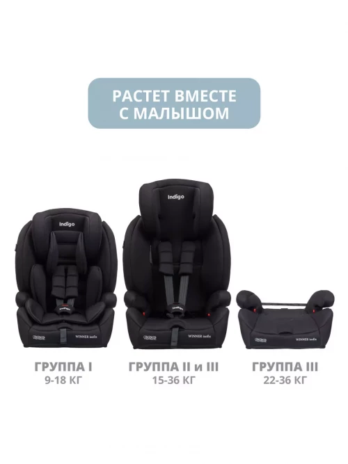 Автокресло Indigo Winner isofix 1/2/3 (9-36 кг) черный матовый
