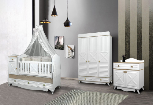 Шкаф Lovely Baby Boni 3-х дверный белый деревянные вставки