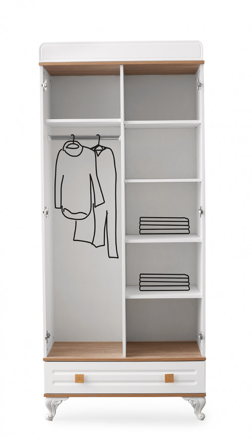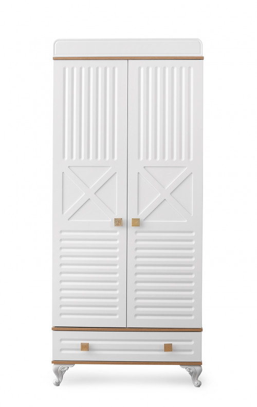 Шкаф Lovely Baby Boni 2-х дверный белый деревянные вставки