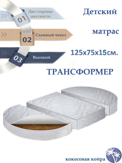Матрас для кроватки-трансформер 75*75*125 15 см Элит жаккард стяжка (овал/круг)