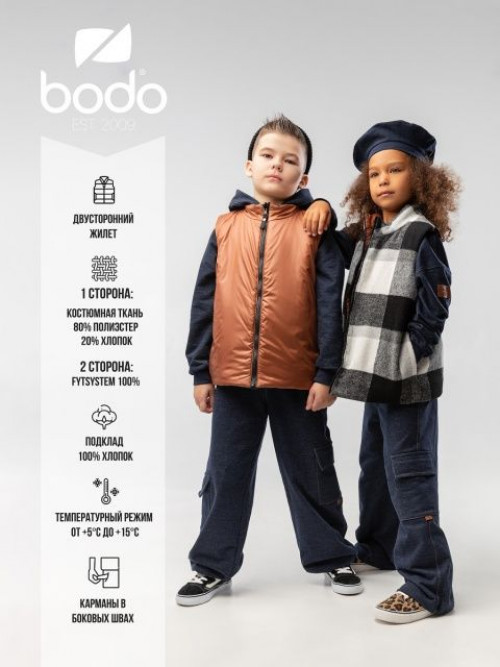 Жилет (Цвет черно-белый (коричневый), Размер 110-116), 14-74U